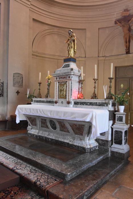 Parmi les autels latéraux, on remarque ceux du transept en marbre blanc, dédiés au nord à la vierge et au sud aux âmes du purgatoire.