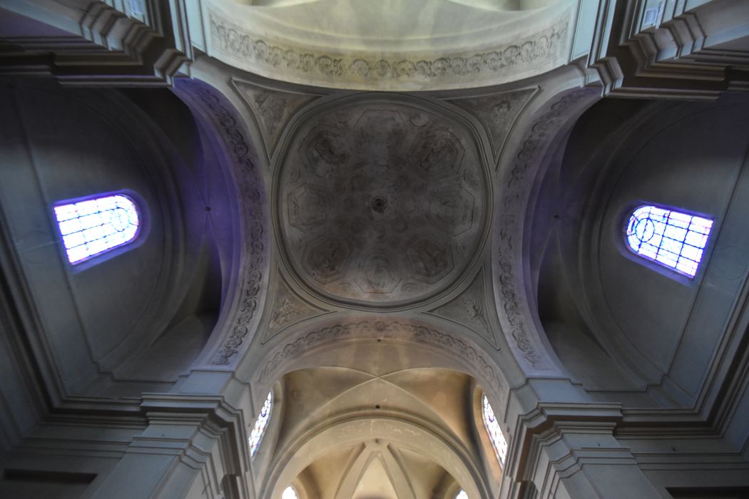La nef supporte une coupole sur pendentif décoré d'une fresque où se mêlent en trompe-l'œil motifs religieux et décor végétal.